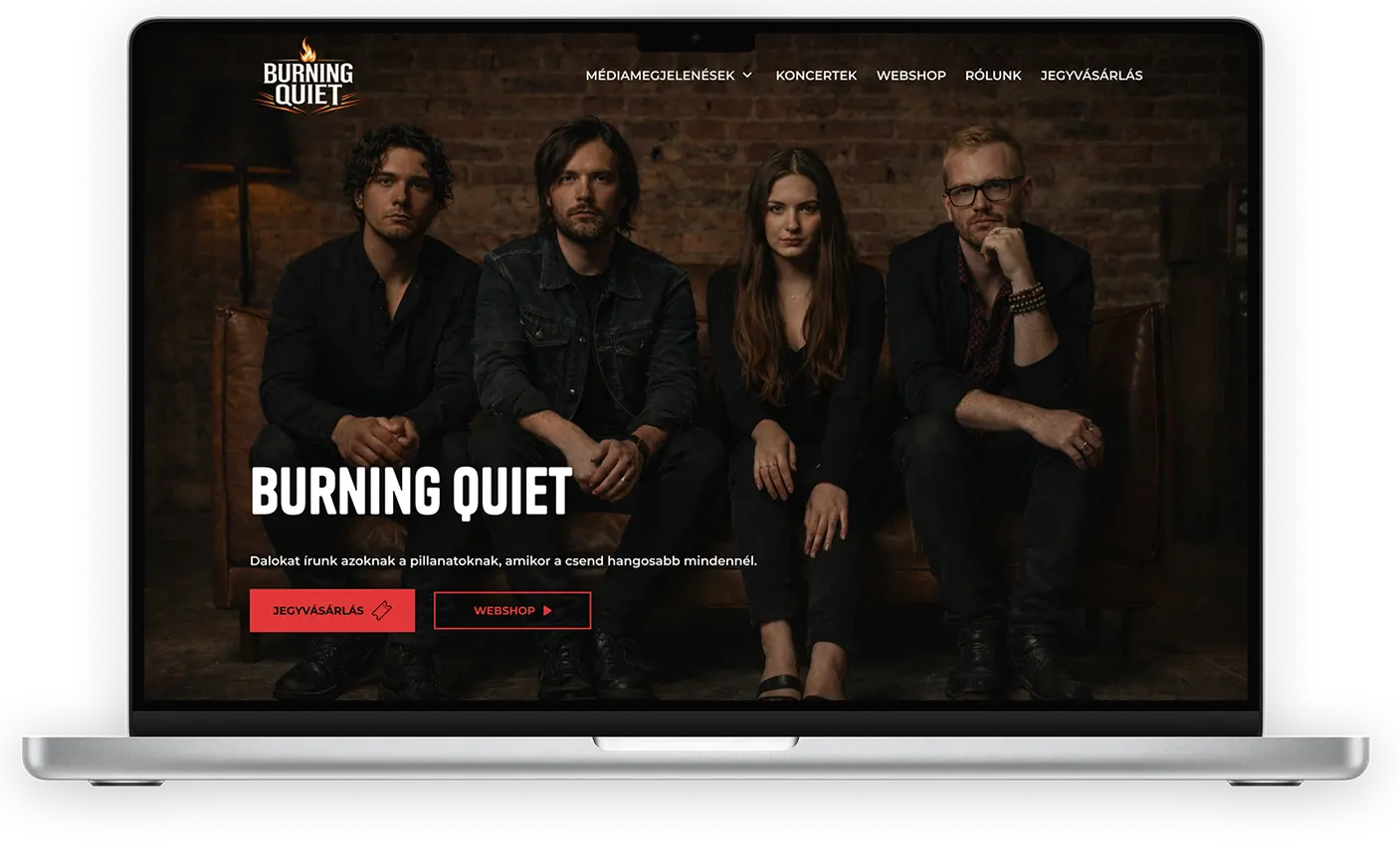 A weboldal kialakításakor az volt a fő szempont, hogy a Burning Quiet köré egy átlátható, központi felület jöjjön létre. Fontos volt, hogy minden lényeges információ – a zenekarról, a megjelenésekről és az aktuális koncertekről – könnyen elérhető legyen, miközben az oldal egyértelműen továbbvezessen a webshopra, a jegyvásárlási lehetőségekre és más kapcsolódó tartalmakra. A tervezés során kiemelt szerepet kapott a zene, a vizuális világ és az élő események egységes megjelenítése, valamint az egyszerű, logikus felhasználói útvonalak kialakítása.